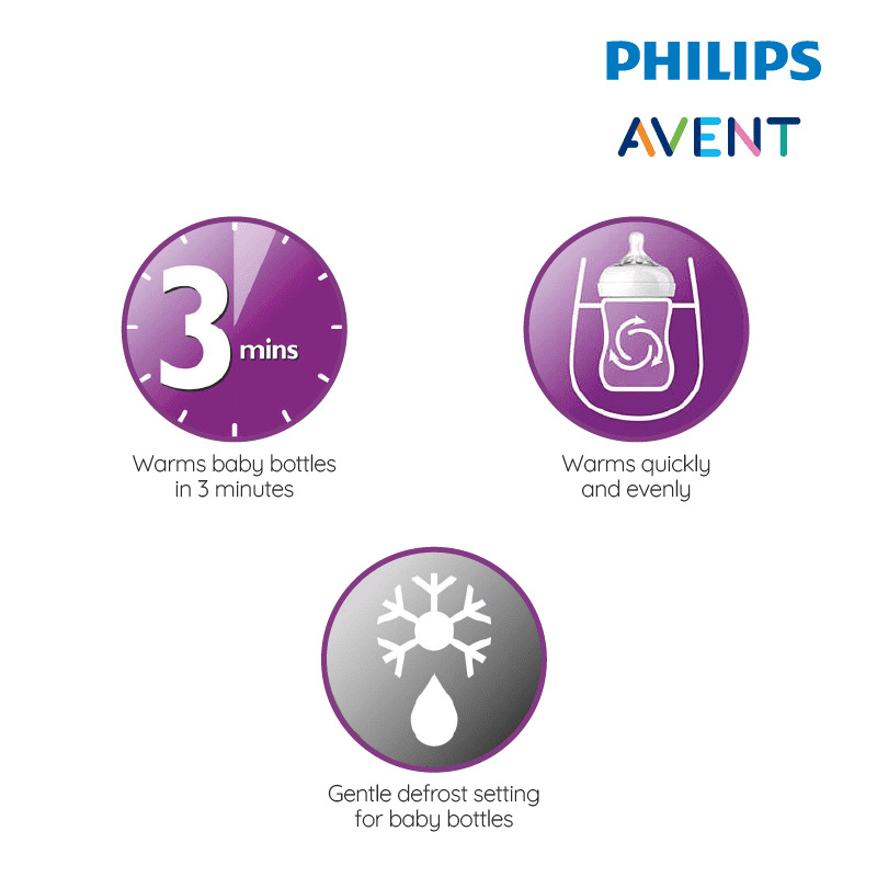 Efficiently prepare warmed feeds and baby food in minutes with the Philips Avent Fast Electric Bottle Warmer. The smart temperature control prevents overheating, ensuring perfect temperatures every time. No need to worry about adjusting heating patterns, this bottle warmer does it for you.